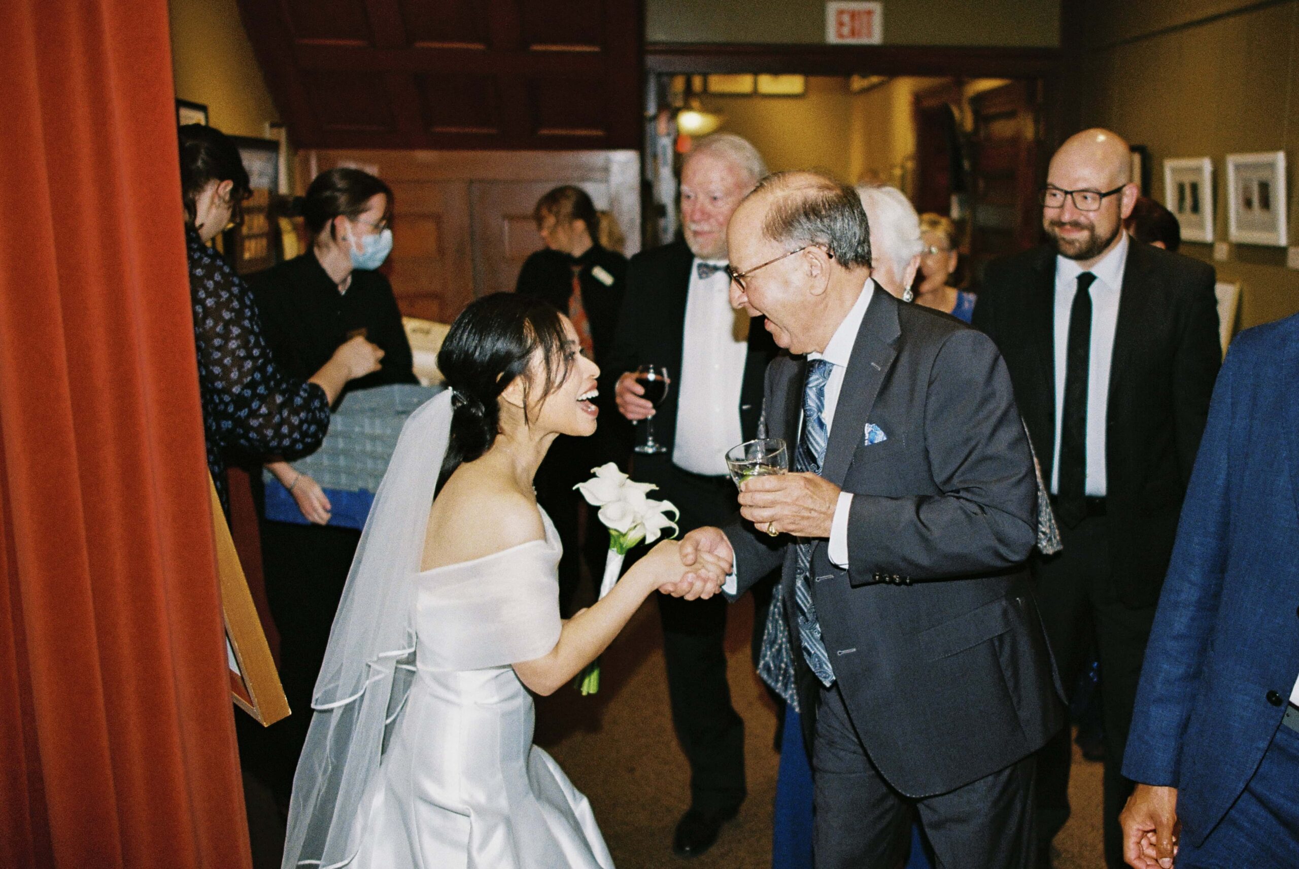 I’m always photographing film on wedding days, regardless of how long I’m hired for. This reception was no different (minus the wedding bit). I was focused on capturing candid moments as usual, but I did want to incorporate as much of the space in my photos as I could. I thought that the historic building and art would come out looking great on film. And I was right! Here are some of my favourite film photographs from the day.